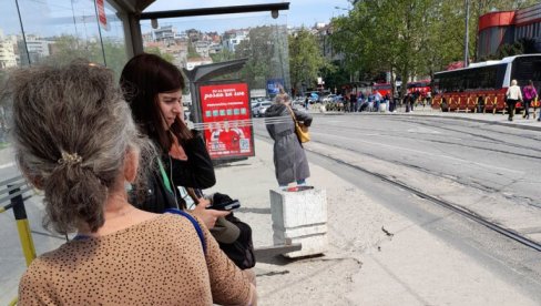 СУГРАЂАНИ који чекају трамваје на станици "Економски факултет" у правцу Новог Београда, код БАС, морају добро да пазе где ће да стану.
