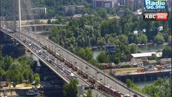 Како се може видети на градским камерама, саобраћај на Мосту на Ади је обустављен у смеру ка Новом Београду, а на лицу места се налази полиција и дизалица.