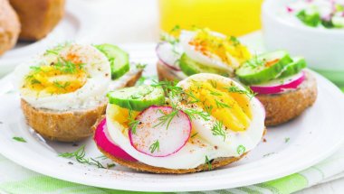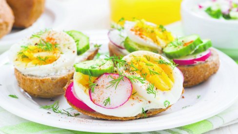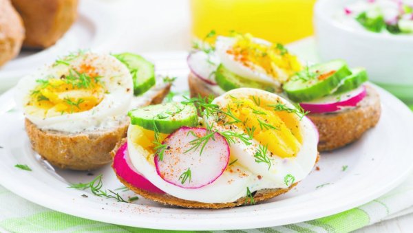 Доручак: 2 кришке белог хлеба, 1 кувано јаје, немасни сир, парадајз