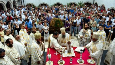 МИР И ЉУБАВ СУ ТЕМЕЉ ПРЕОБРАЖЕЊА У ХРИСТУ: Патријарх Порфирије служио литургију у манастиру Крки (ФОТО)