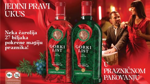 Горки Лист тако још једном доказује своју иновативност и поштовање према свим пријатељима и љубитељима његовог јединственог, оригиналног укуса, без компромиса када су у питању квалитет и традиција. Лимитирано издање празничне боце Горког Листа биће доступно и његовим љубитељима у региону.