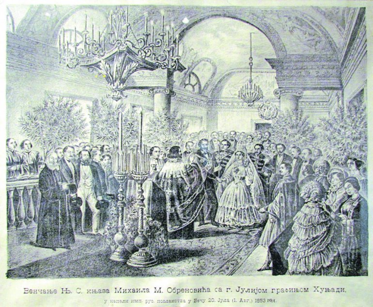 КНЕЗ Михаило Обреновић очито је пристао на неискрен брак, ,,залетео“ се, помало, улазећи у све то - да би остварио себе као некаквог аристократу у царској Вијени и потврдио свој статус у високом друштву. Пре Јулије, Михаило се у Бечу дуго ,,гледао“ са Маријом фон Лихтенштајн, ванредном лепотицом која му је на свечаностима узвраћала погледе и осмехе, а он њој писао стихове („Први поглед ока твога, сјајном сунцу подобан, пленио је срце моје, учинио робом га“), али се њен отац распитао за тог ,,скоројевића“, сазнао да има ванбрачну децу и „сумњиво богатство" и спречио сваку даљу причу. Тако је Михаило, који је друштвено понизио једну Марију (Беркхаус), доживео да га после четири године друштвено понизи друга Марија, макар и одлуком свог оца. Наставио је да се „бори са мислима својим“ и тугује (,,јер твој бити не могу“) и тада се, као за утеху, зближио са Јулијом, девојком из суседства, којој његово богатство није било ,,сумњиво“, већ добродошло. Ванбрачни син њој није представљао проблем, под условом да она не мора да брине о њему, али је заузврат она имала једног ,,пријатеља“, тек да Михаилу распламса жељу за некаквим доказивањем, и он се том доказивању одазвао. Дао је све од себе да потпуно освоји њену наклоност... У пару с њом осетио се коначно прихваћеним у друштву којем је тежио. Гроф Ласло Хуњади, Јулијин брат, због свега тога сматрао је тај брак од почетка “болесним” и није му предвиђао дуг век, што се, како је сам рекао Карлу Пацеку, иначе пиониру здравствене службе у Кнежевини Србији, на крају и обистинило.