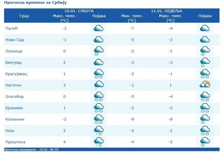 МЕТЕО АЛАРМ У СРБИЈИ ЛЕДЕНИ ДАН ПРЕД НАМА: Временска прогноза за суботу, 10. јануар