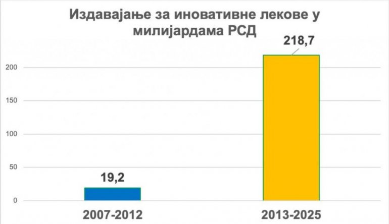 У ПЕРИОДУ од 2013. до 2025. године у Србији ја за иновативне лекове издвојено 218,7 милијарди динара.