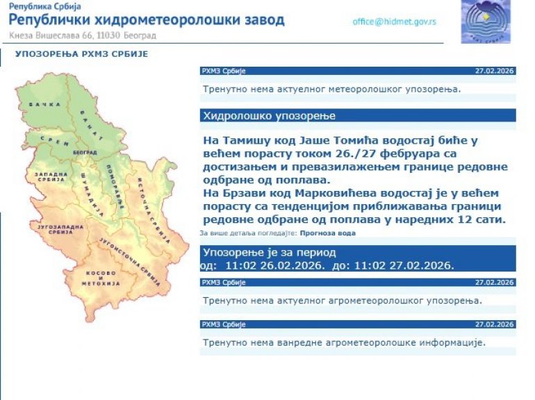 - Средином месеца постоји опција јачег захлађења, али је она за сада мало вероватна. Наредних дана време без промена. Јутра хладна уз углавном слаб, приземан мраз и ретку појаву магле. Током дана сунчано и релативно топло. Минимуми од -2 до три степена Целзијуса. Максимуми прво од седам до 17, а после 27. фебруара од 11 до 21 степен Целзијуса, дакле право рано пролеће.