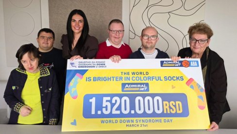 ХУМАНИТАРНА кампања „Свет је лепши у шареним чарапама“, реализована у сарадњи компаније АдмиралБет и АдмиралБет АБА лиге, успешно је приведена крају уручењем донације Савезу удружења за помоћ особама са Дауновим синдромом у Србији.