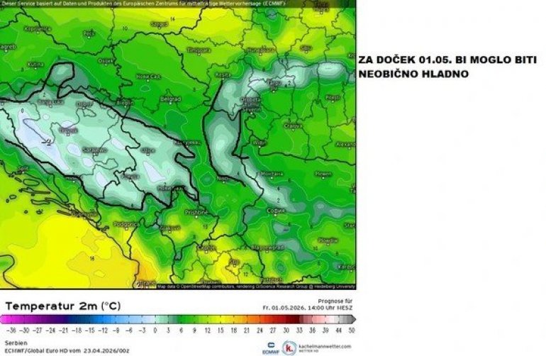 За сам 1. мај прогнозира се време знатно испод просека за ово доба године.