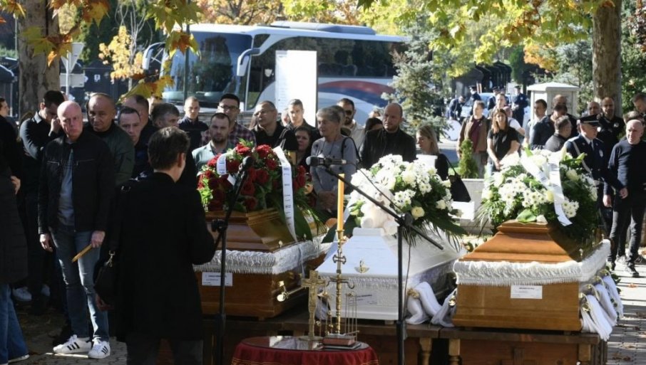 БЕЛИ САНДУК РАСПЛАКАО СВЕ НА ГРОБЉУ: Испраћај трочлане породице на вечни починак (ФОТО/ВИДЕО)