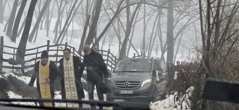 Свештеник држи опело на путу до гробља