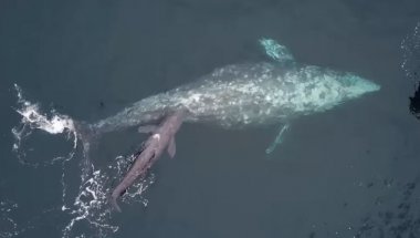 Иако није неуобичајено да се сиви китови рађају током зимског путовања од хранилишта у близини Аљаске до топлих вода код Мексика, ретко се деси да се то сними или фотографише.