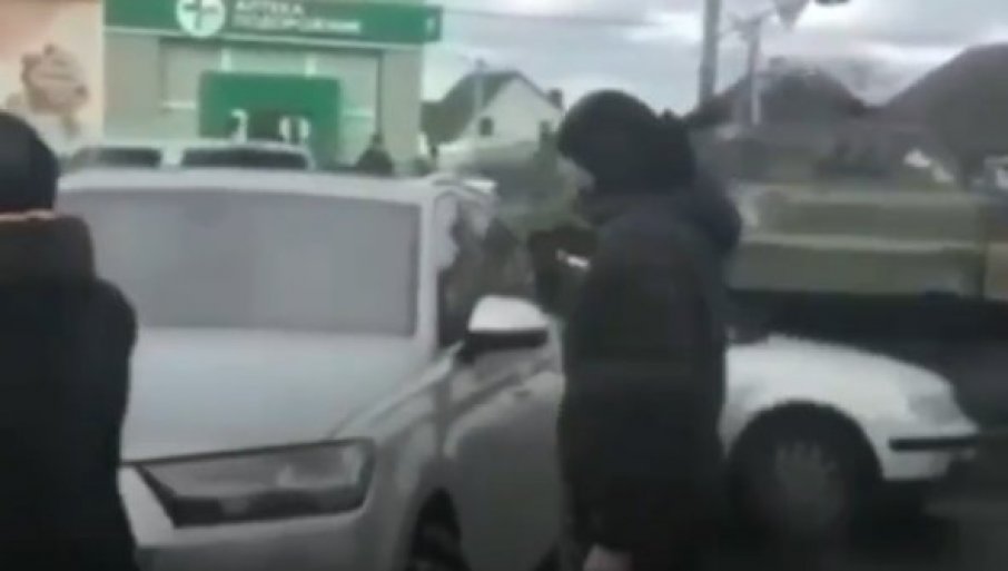УКРАЈИНЦИ ГАЗЕ СВОЈЕ ГРАЂАНЕ: Оклопним возилом се сударили са паркираним аутомобилима, прегазивши један од њих (ВИДЕО)
