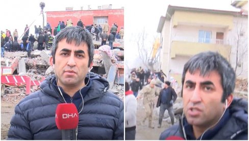НОВИНАР агенције Демирорен Хабер Ајанси затекао се усред новог снажног потреса док је извештавао о последицама стравичног земљотреса који је погодио Турску.