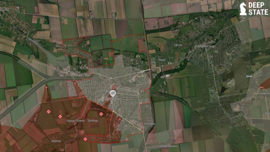СИТУАЦИЈА у близини града Покровска у Доњецкој области остаје критична. Ово је известио Телеграм канал Дубоке државе (DeepState), медија под контролом ГУР, који је објавио мапу борби око града.