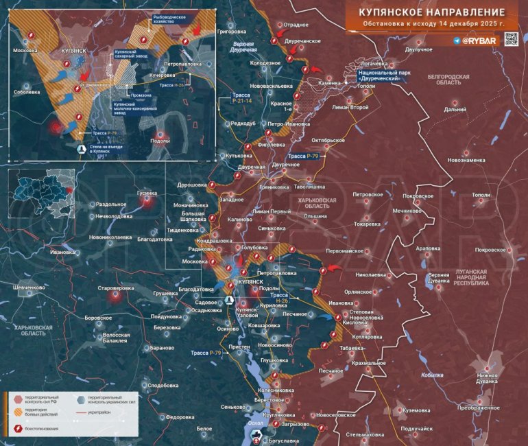 У међувремену, Телеграм канал „Иди и смотри“ (Дођи и види) известио је о покушајима украјинских оружаних снага да деблокирају Купјанск. Према извору, контранапади су у току у близини града. Конкретно, жесток отпор се одвија у близини Купјанска-Узлове.