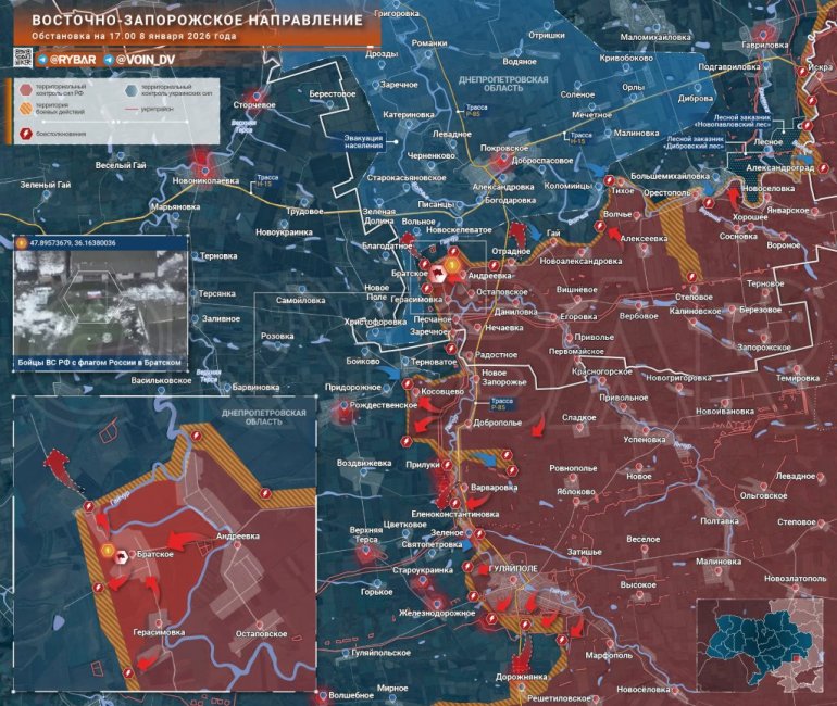 Јединице групе трупа "Исток" ослободиле су насеље Братско у Дњепропетровској области, неутралисавши том приликом више од 220 украјинских војника, три борбена оклопна возила и три артиљеријска система.
