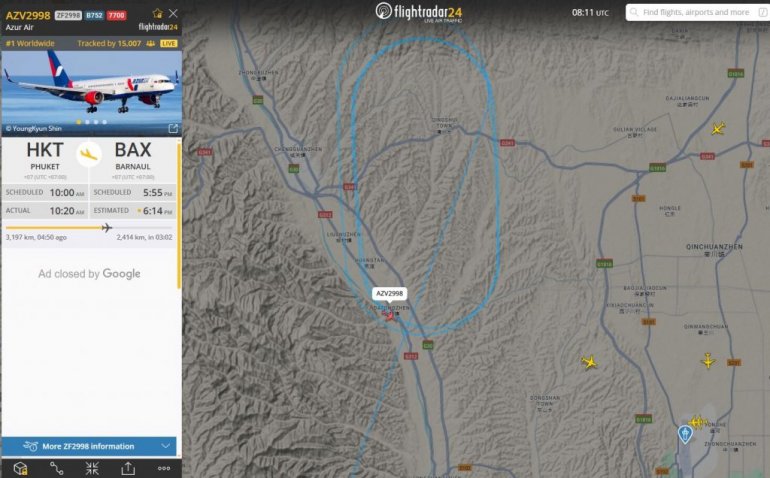 Лет је из Пукета на Тајланду до руског града Барнаул у Сибиру. Азур Ер је руска авио-компанија са седиштем у Москви.