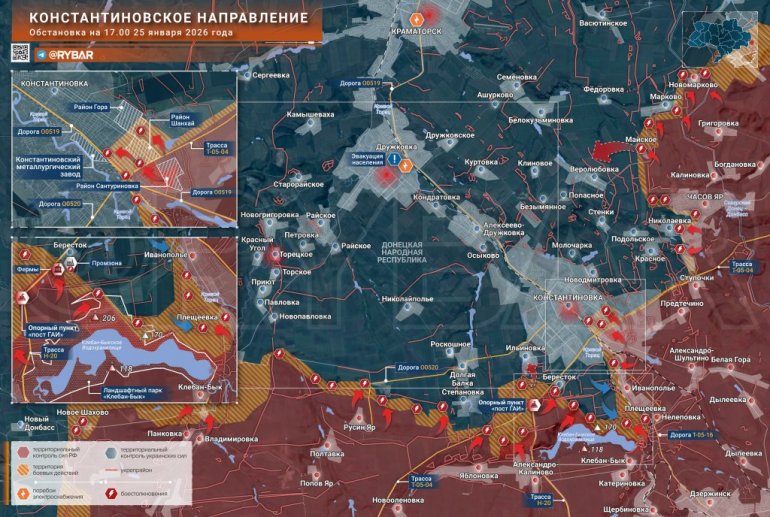 Упркос континуираном хладном времену, интензитет борби у овом правцу се повећава, а битка за Костјантиновку постепено ескалира. Непријатељ покушава да повећа густину својих снага у граду, процес који је делимично олакшан временским условима.