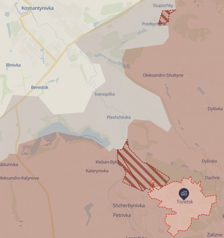 „Дубока држава“ такође извештава да је руска војска напредовала у две области у близини Костјантиновке. Штавише, јавна група је ставила суседни град Торецк под руску контролу. Фото ДипСтејт