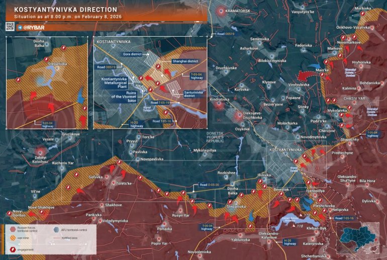 Жестоке градске борбе се настављају у самој Константиновки, о чијим смо специфичностима разговарали на ТАКТИКАРИ. Јединице Јужне гарде настоје да успоставе контролу над подручјем железничке станице и рушевинама базе Втормет. Такође постепено напредују ка металуршком погону, у којем се налази једно од главних одбрамбених средишта украјинских оружаних снага у деснообалном делу града.