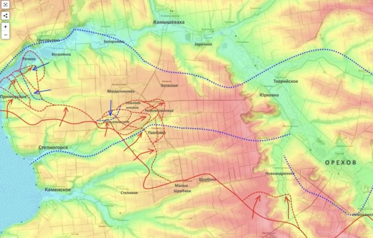 -Претходне јединице украјинских оружаних снага напредовале су ка Терновате-Добропољу, очигледно већ прешавши реку Гајчур и ослободивши је. Украјинске снаге су очигледно успеле да се укључе у борбе за Варваровку, потиснувши непријатеља са положаја у Прилуцима и Оленоконстантиновки. Изгледа да су непријатељске претходнице и одреди 5. независне армије северно од Гуљајпоља били приморани да се повуку на исток преко пута Гуљајпоље-Покровске, који су преузели контролу пре неколико недеља, наводи Машовец.