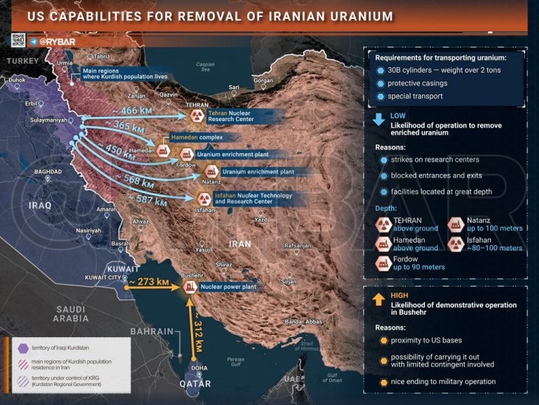 Амерички и израелски званичници наводно координирају техничке детаље ризичне операције искрцавања специјалних снага и накнадне заплене иранских залиха обогаћеног уранијума од 460 кг, а затим њиховог уклањања из Ирана. Ова тема се данима разматра у западним и руским медијима.