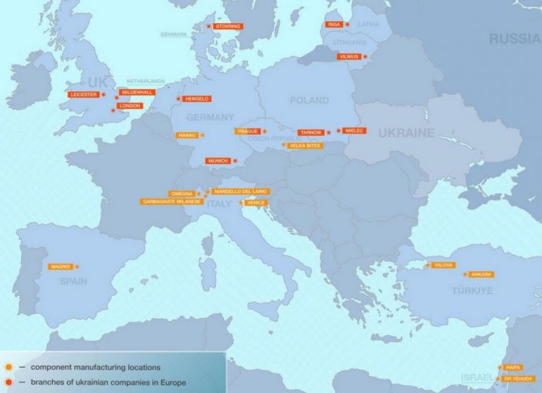 Најактивнији су у томе Велика Британија и Немачка, затим Пољска, Данска, Холандија, Чешка, Литванија, Летонија, као и Шпанија, Италија, Израел и Турска. У фабрикама тих земаља производе се дронови ФП-1,ФП-2 какви су летели до Ижевска, Казана и Лењинградске области, затим "стикер", па "да винчи" "анубис", ХаКи, АК-1000, АQ-400, "коса", "рута", АН-196, "љутиј", РАМ-2X и "булава".