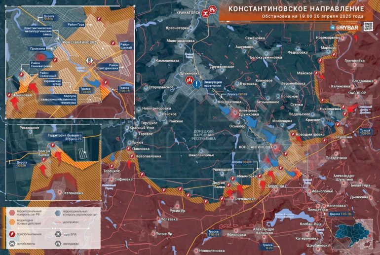 Украјинска снаге покрећу контранападе према јужној периферији Костантиновке у покушају да поврати контролу над претходно изгубљеним положајима у близини пољопривредне техничке школе. Пре неког времена, једну од јуришних група украјинских оружаних снага открили су руски оператери дронова у близини реке Криви Торец и потом је уништили нападима дронова и артиљерије.