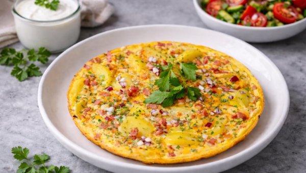 КРОМПИР ТОРТИЉА СА ЛУКОМ И ШУНКОМ: Једноставан и заситан доручак