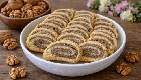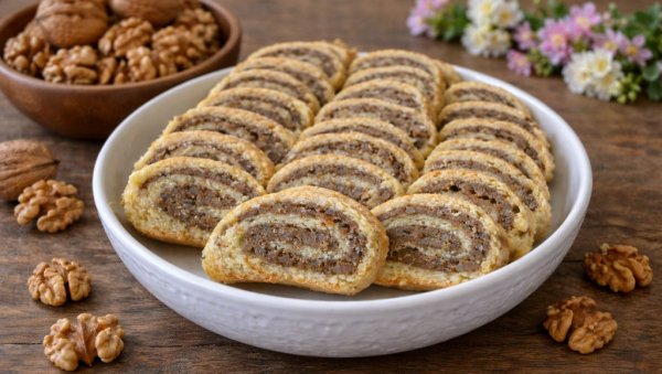 МЕДЕНА ОРАХ РОЛНА: Хрскаво тесто и кремасти орах фил