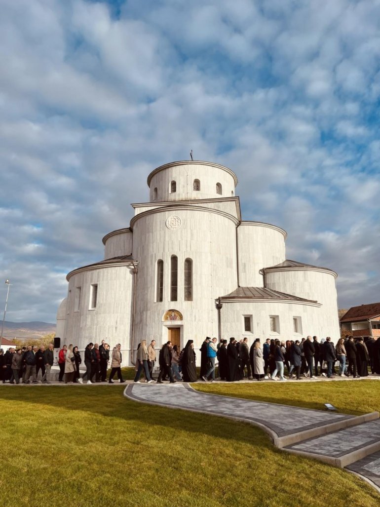 Јуче ујутро, он је предводио свету литургију и чин освећења новог храма Светог Саве у Дежеви, подигнутом на темељу средњовековне саборне цркве недалеко од места Савиног рођења.