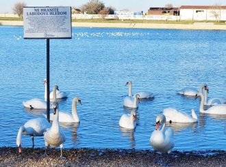ЛАБУДОВИ су последњих седам година постали редовни зимски станари Градског језера у Вршцу. Ове зиме било их је највише до сада – 48, а њихова бројност ових дана полако опада, јер су се многи упарили и отишли на неко друго место да свију гнездо.