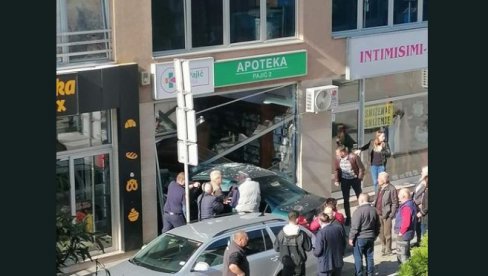 МУШКАРАЦ ИЗБЕГАВАО ПАРКИРАН АУТОМОБИЛ, ПА УЛЕТЕО У АПОТЕКУ: Уместо кочнице стиснуо папучицу гаса, саобраћајна несрећа у Брчком (ФОТО)