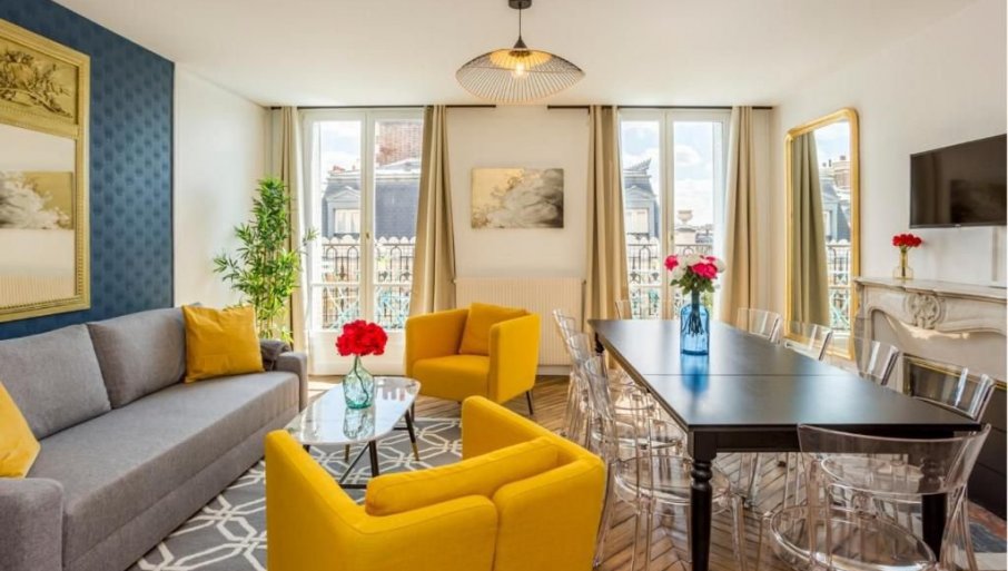 Занимљиво је да се апартман налази у згради која је заштићени историјски споменик Париза. Пројекат је радио архитекта Jacques Ignace Hittorff,, познат по великим урбанистичким подухватима, у сарадњи са Бароном Хаусманом, по налогу Наполеона Трећег, који је обликовао модеран изглед Париза.
