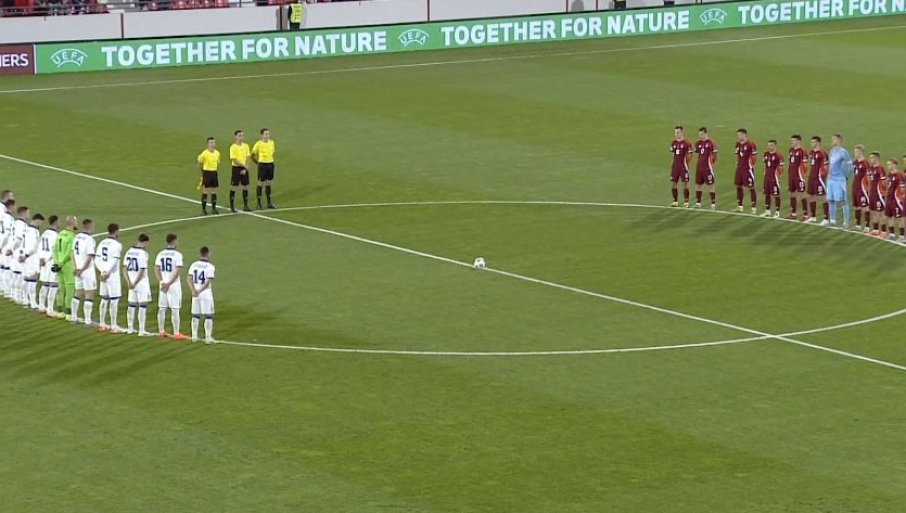 16.36 - У односу на меч са Енглеском, у стартној постави нема Мимовића, Гудеља, повређеног Ивана Илића, Терзића и Влаховића, а "нова" петорка је Ераковић у одбрани, Грујић као задњи везни, затим од старта "везисти" Самарџић и Радоњић који су против Енглеза ушли као замене, док је у нападу Влаховића од почетка одменио Лука Јовић. И, уместо тадашњих 4-5-1, овога пута Србија у формацији 4-2-3-1