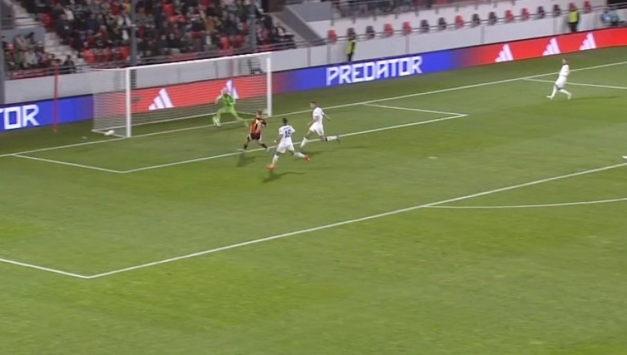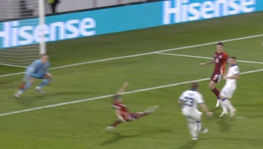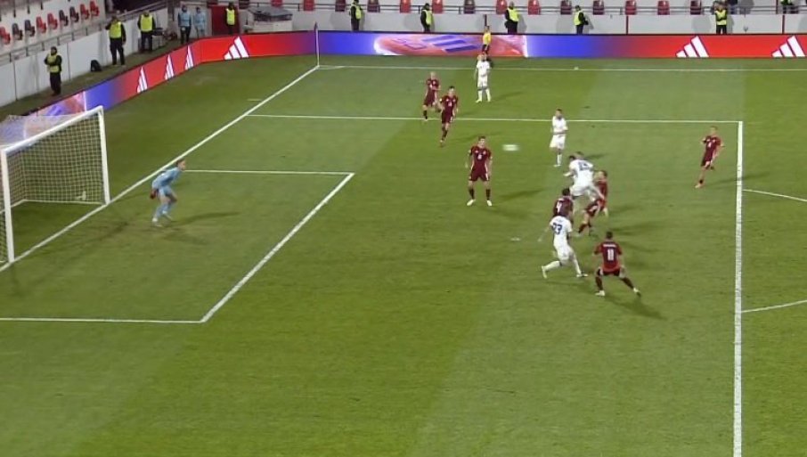 Гол Летоније у Лесковцу за 0:1 против Србије / Foto: Printskrin/Arena sport