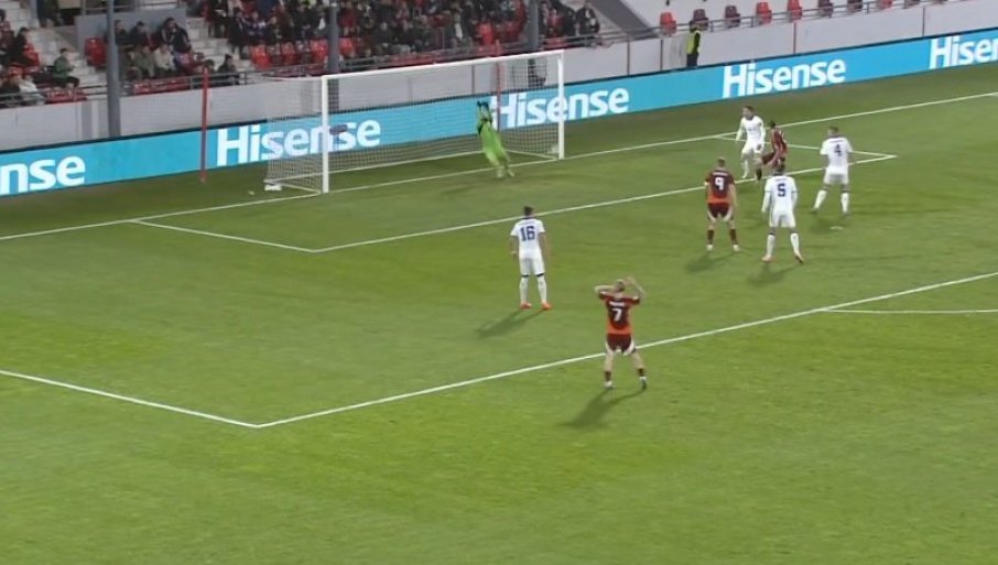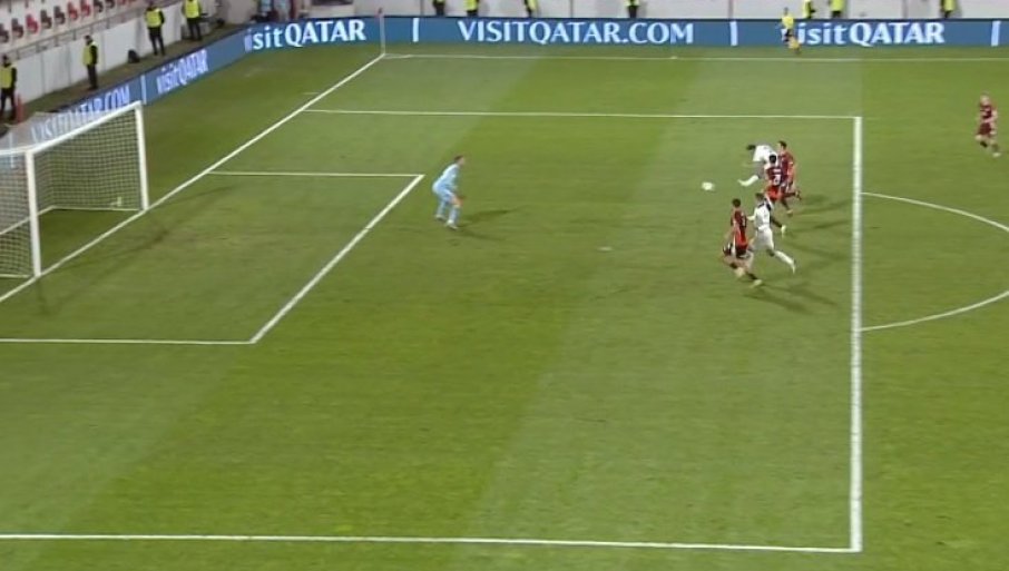 Одавде је промашио Мимовић... Foto: Printskrin/Arena sport