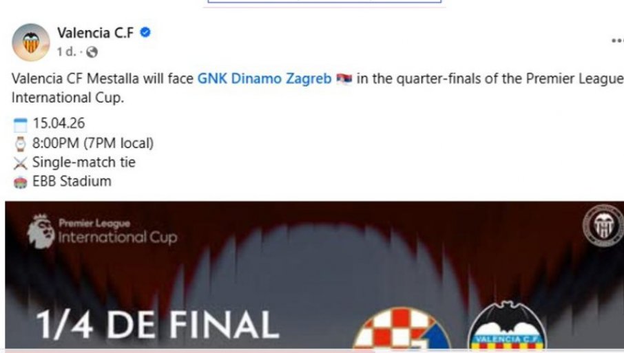 Али, Валенсија је направила велику грешку у најави ове утакмице. На друштвеним мрежама су поставили српску заставу поред имена Динамо уместо Хрватска.