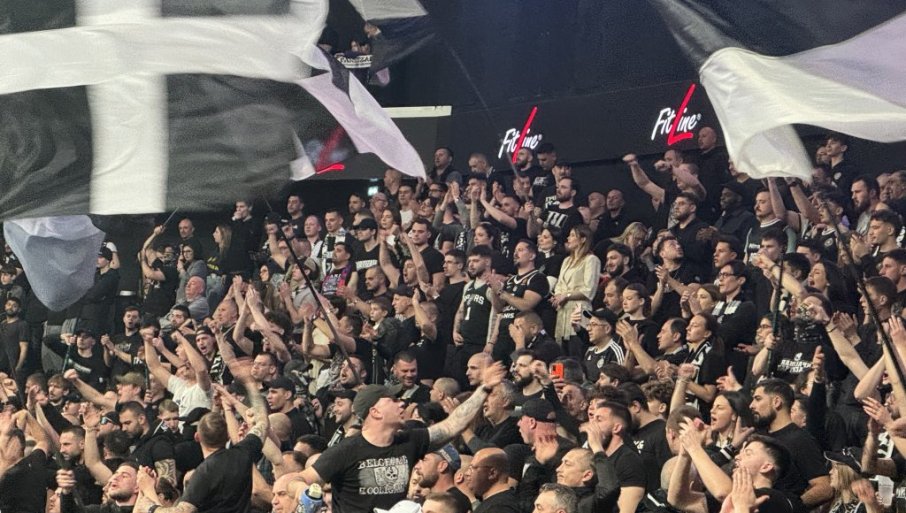 Приређен је прави спектакл. Партизанови навијачи налазе се свугде у хали, па се дозивају и "одјеком".