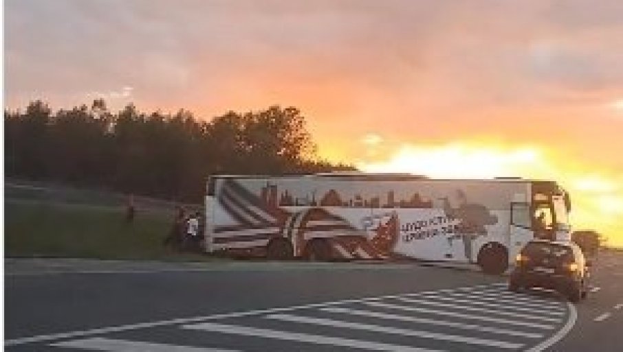НЕЗГОДА КОД СТАРЕ ПАЗОВЕ: Аутобус џудиста Црвене звезде склизнуо с пута (ВИДЕО)