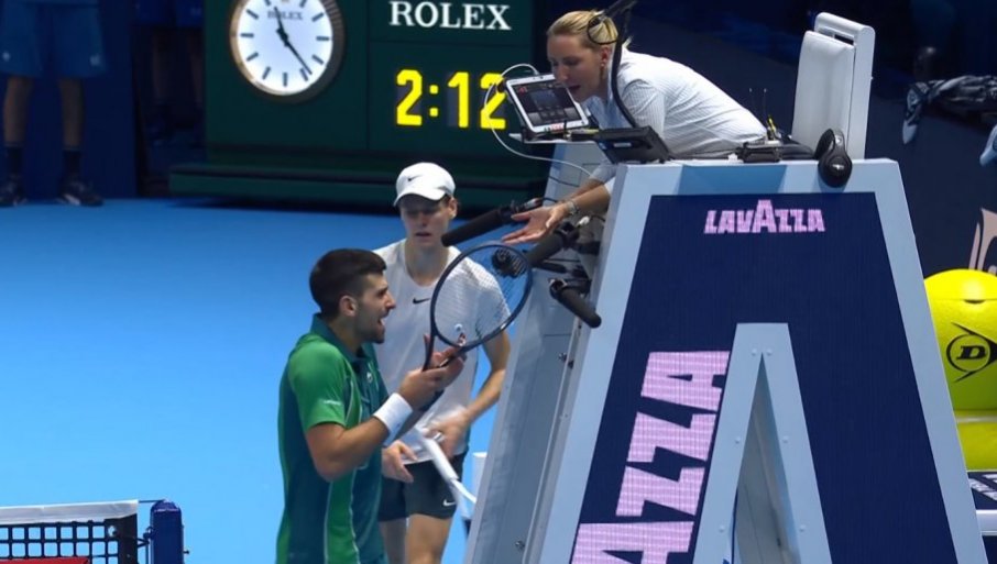 Наиме, видно изнервиран како то да линијске судије никако не виде огроман аут када Синер пошаље лоптицу ван терена, или се не огласи Орели Турте када Италијан погоди сервисом врх мреже, Ноле је ушао у расправу са главним арбитром, што је довело до буре незадовољства - публике.