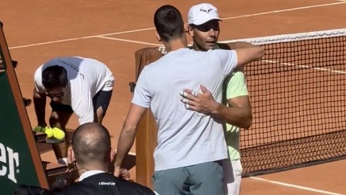 Непосредно пре њега тренирао је Рафел Надал, па је то била прилика да се два тениска титана срдачно поздраве и загрле у пролазу.