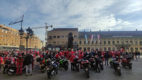 СЛАТКИШИ ОД ДЕДА МРАЗА СА ДВОТОЧКАША : Новосадски мотоцилисти вожњом градским улицама делили пакетиће (ФОТО)