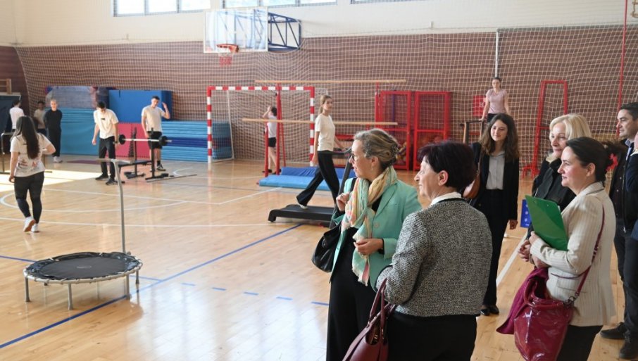 Амбасадорка је са својим домаћинима најпре обишла Средњу школу Свилајнац, где је упозната са резултатима награђеног пројекта „Еко општина“, посвећеног екологији и заштити животне средине. Том приликом представљена је и донација једног француског спортског бренда који је овој школи обезбедио спортску опрему као део награде за остварене резултате.