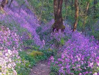 У рано пролеће она добија још један назив – „Љубичаста стаза“, зато што се тада око уског путића шире непрегледна поља љубичастог цвећа, у народу познатог као сребрњак, који, када му отпадну латице, формира танке седефасте махуне, налик сребрном новчићу. Зато се и препоручује да се овом стазом шета баш у овом периоду, јер је призор заиста очаравајући. Ни једна фотографија или снимак не могу на аутентичан начин да дочарају ту лепоту. То се мора доживети.