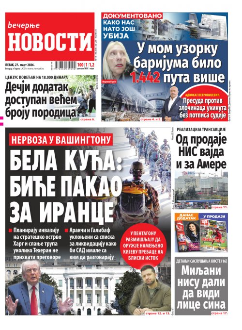 Вечерње новости - штампано издање za 27.03.2026.