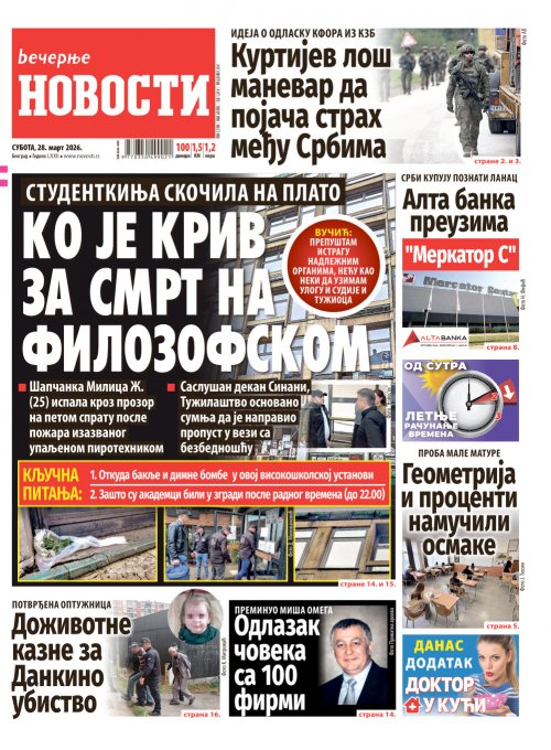 Вечерње новости - штампано издање za 28.03.2026.