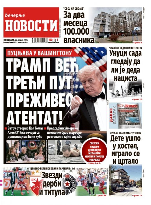 Вечерње новости - штампано издање za 27.04.2026.