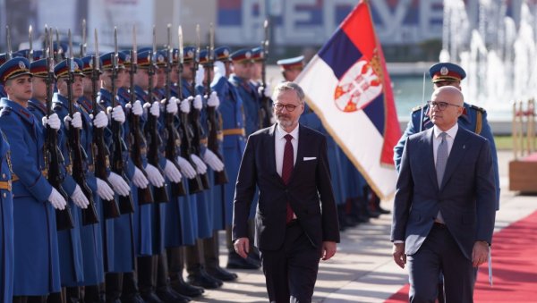 ВУЧЕВИЋ ДОЧЕКАО ПРЕМИЈЕРА ЧЕШКЕ ИСПРЕД ПАЛАТЕ "СРБИЈА": Фијала је дочекан уз почасни строј Гарде (ФОТО)