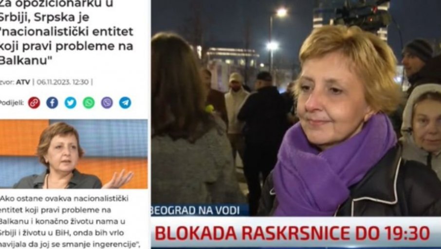 БЛОКАДУ ПРЕДВОДИ БИЉАНА СТОЈКОВИЋ: Жена за коју је Сребреница геноцид, која вређа СПЦ и тражи укидање Републике Српске (ФОТО)