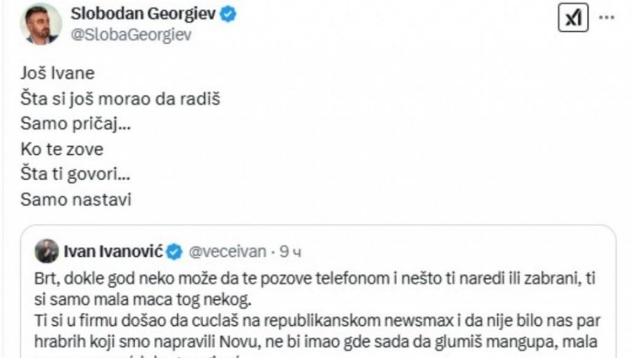 ЂИЛАСОВ уредник Слободан Георгијев и водитељ Иван Ивановић жестоко су заратили на друштвеној мрежи ''Икс''.